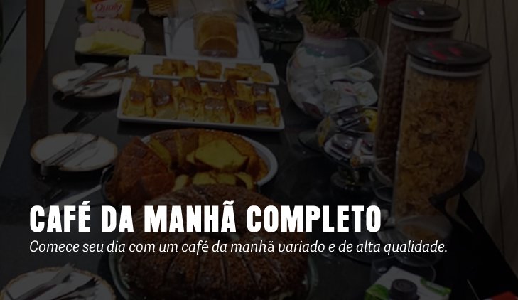 Para começar o dia da melhor forma, preparamos um café da manhã completo e variado, com um buffet que inclui frutas frescas, bolos, pães, frios, cereais, sucos e sobremesas. É a energia que você precisa para aproveitar cada momento na cidade.